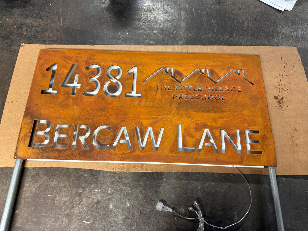 LED Metal Address Yard Sign: Rustic House Number Sign on Stakes