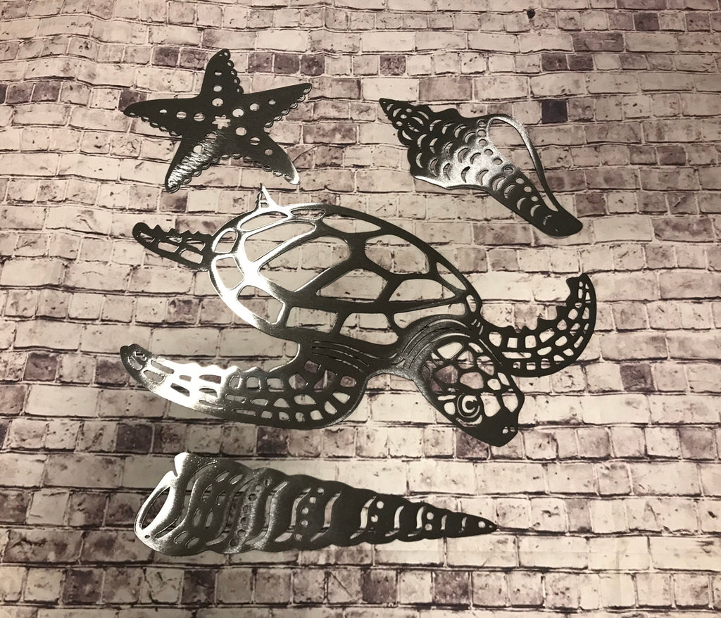Made out of 16 gauge steel hand ground powder coated clear for outdoor use or indoorTake a look you can add some seashells now to fill in the space Around your beautiful artwork