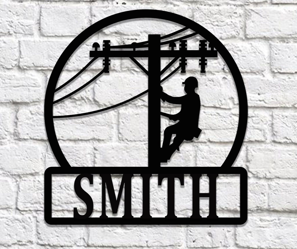 Personalized Lineman Metal Sign: Custom Family Name, Outdoor Decor
