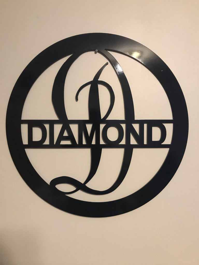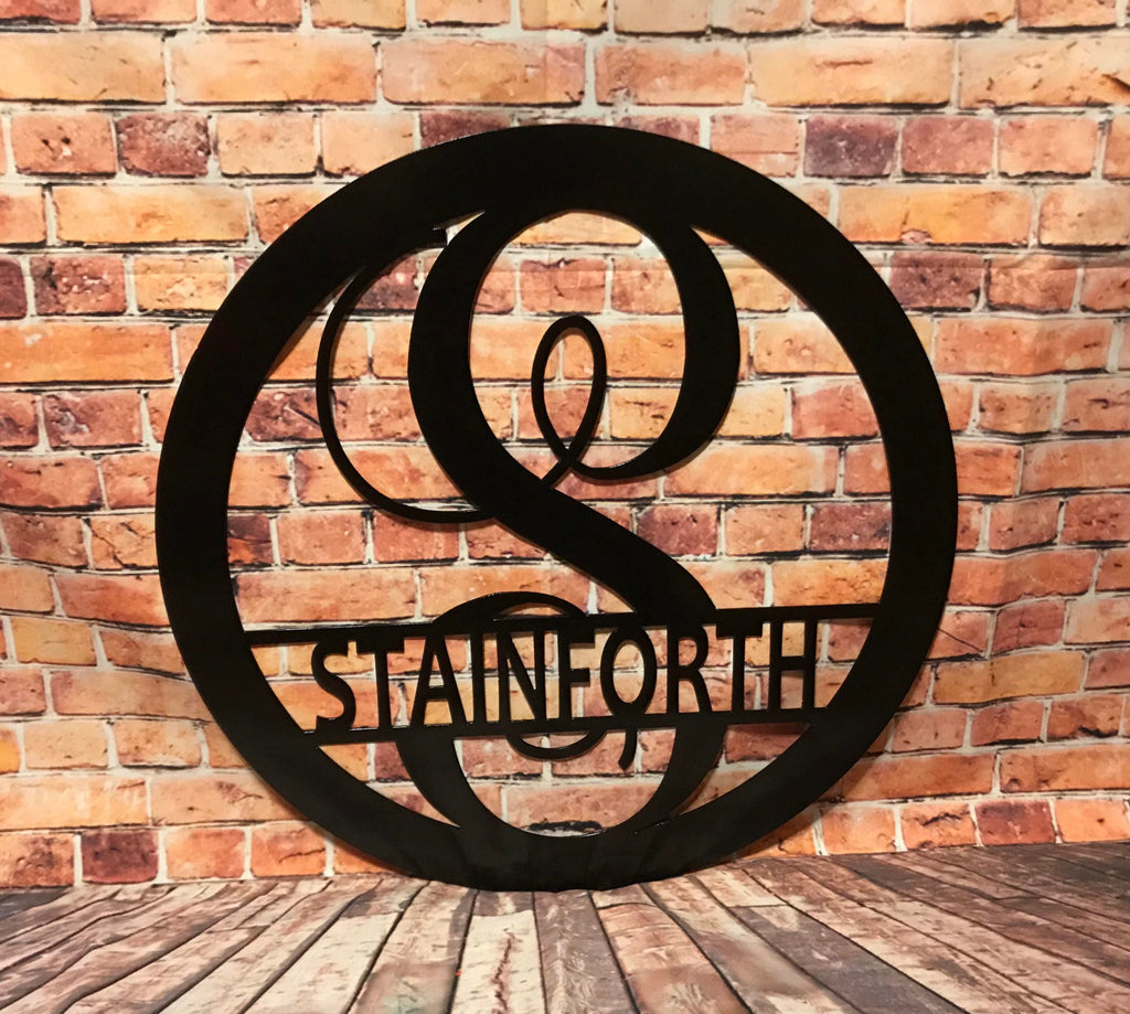 Monogram sign made out of 16 gauge steel then powder coated in the color of your choice.
