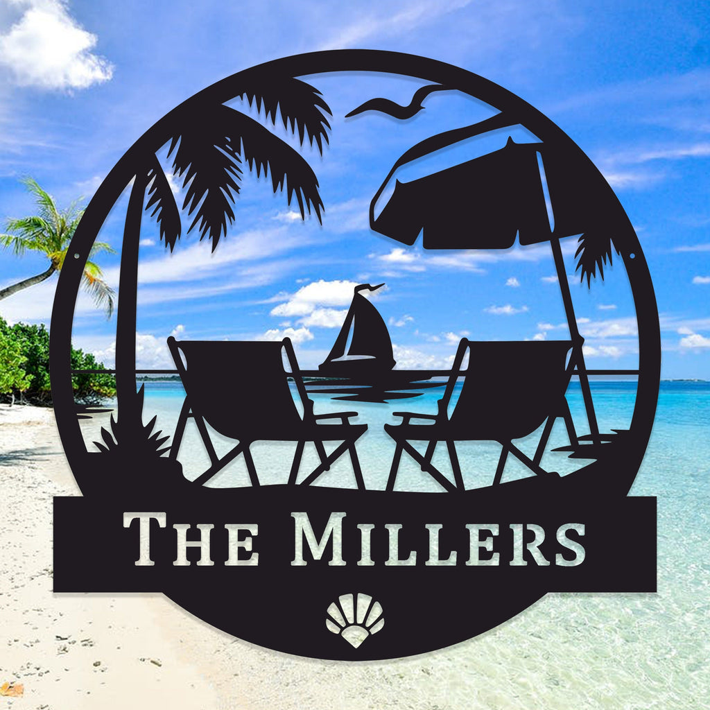 Sunset Beach sign Personalized Metal Monogram, Wedding Gift. Family Name Sign, Outdoor Name Sign, Anniversary, Last Name Sign,Front Door