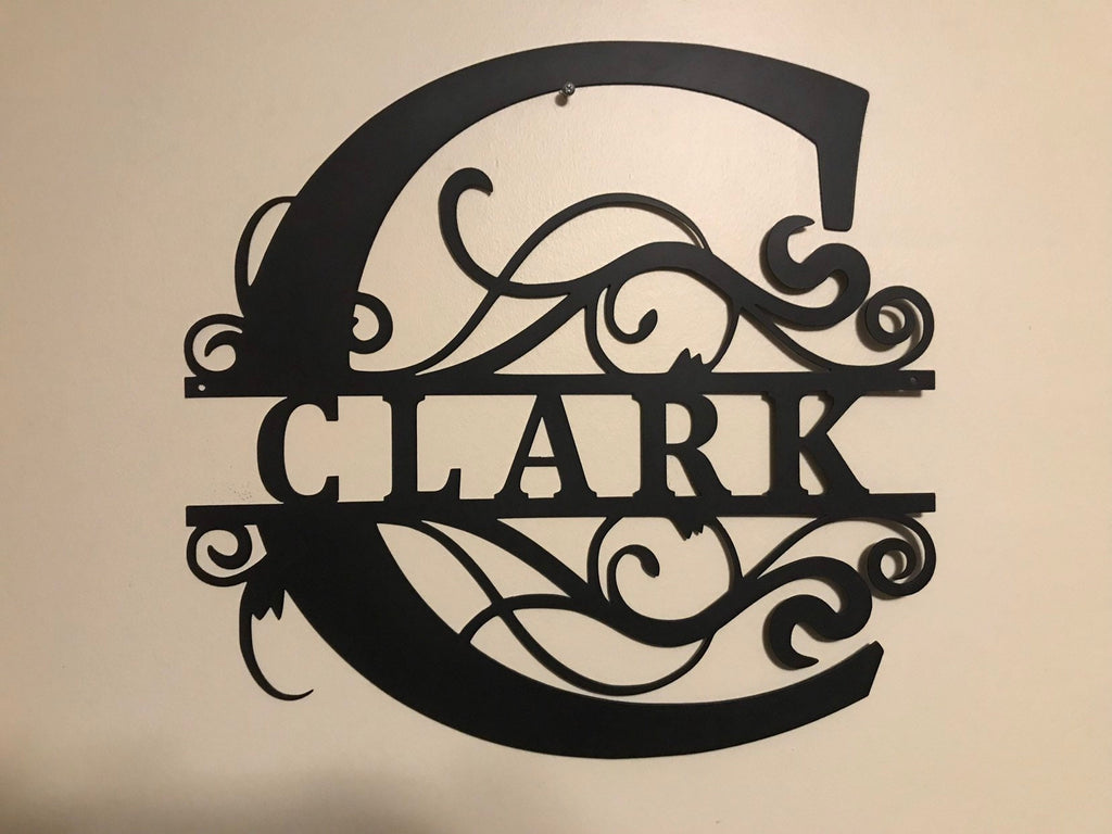 Thick letter fancy Monogram sign made out of 16 gauge steel then powder coated in the color of your choice.Metal Monogram Door Wreath, home and living, Wall Decor, rustic sign, door Hanger, Rustic sign, Gift Idea, personalized wreath, steel letter. In the personalized section just let us know what name and letter, Color you would like Feel free to contact us if you have any questions